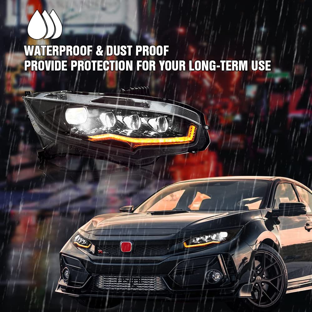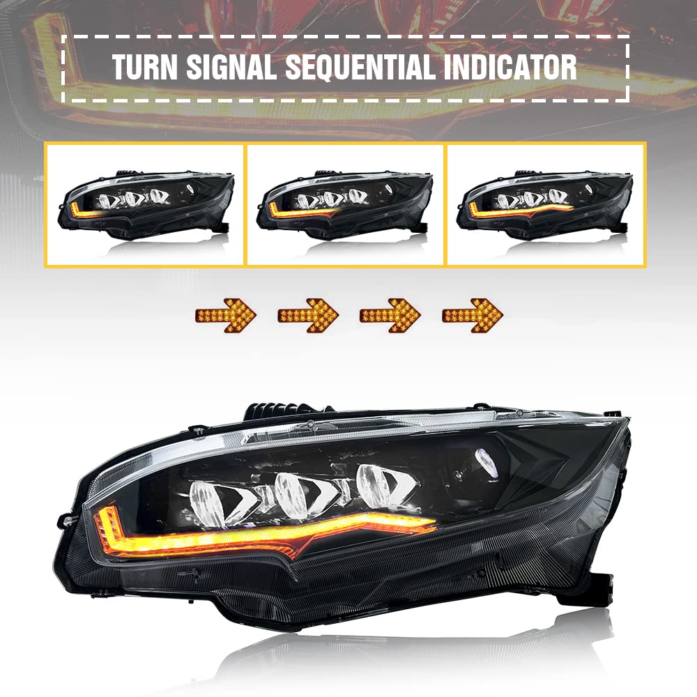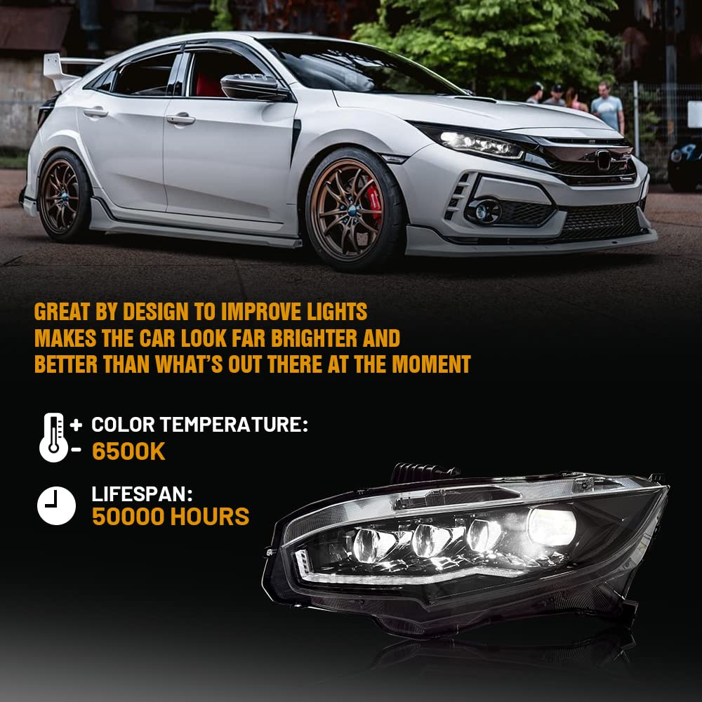 Full LED Headlights Assembly For 10th Gen Honda Civic 2016-2022