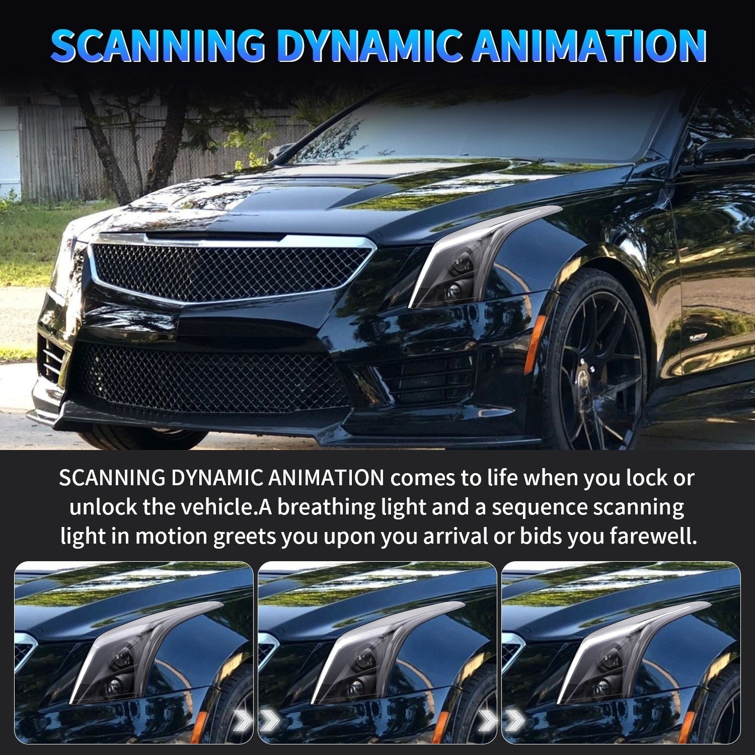 💡Start Up Animation:With the dynamic light system, our head lamps have the scanning animation when you starting your car. Also, when you start the vehicle, the DRL will light with blue light and fades to white. Let your car become the focus of everyone’s attention!