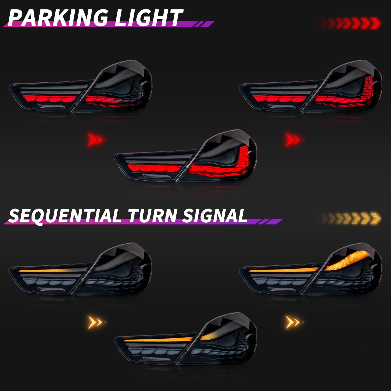✅Package Content: Driver and Passenger Side Complete Set (2-piece one side, 4-piece totally), full LED design, no extra bulbs needed.