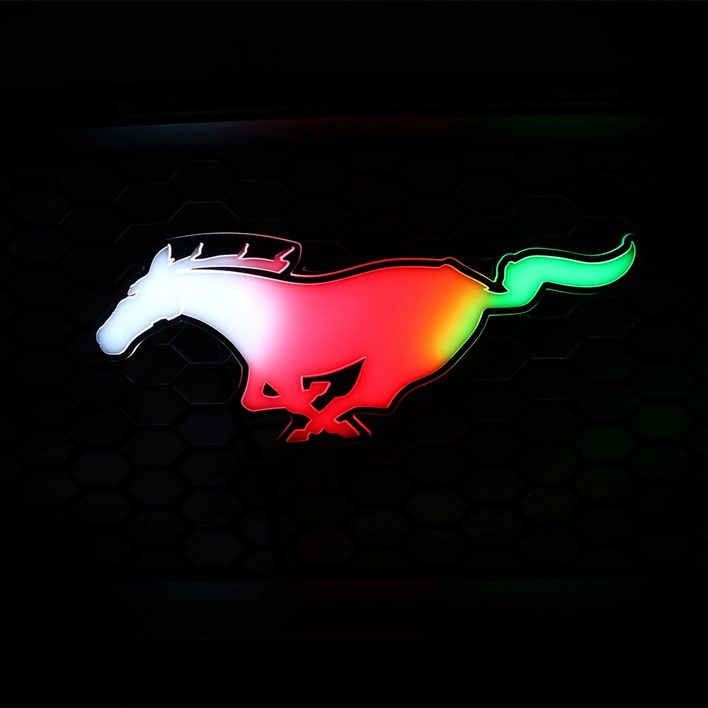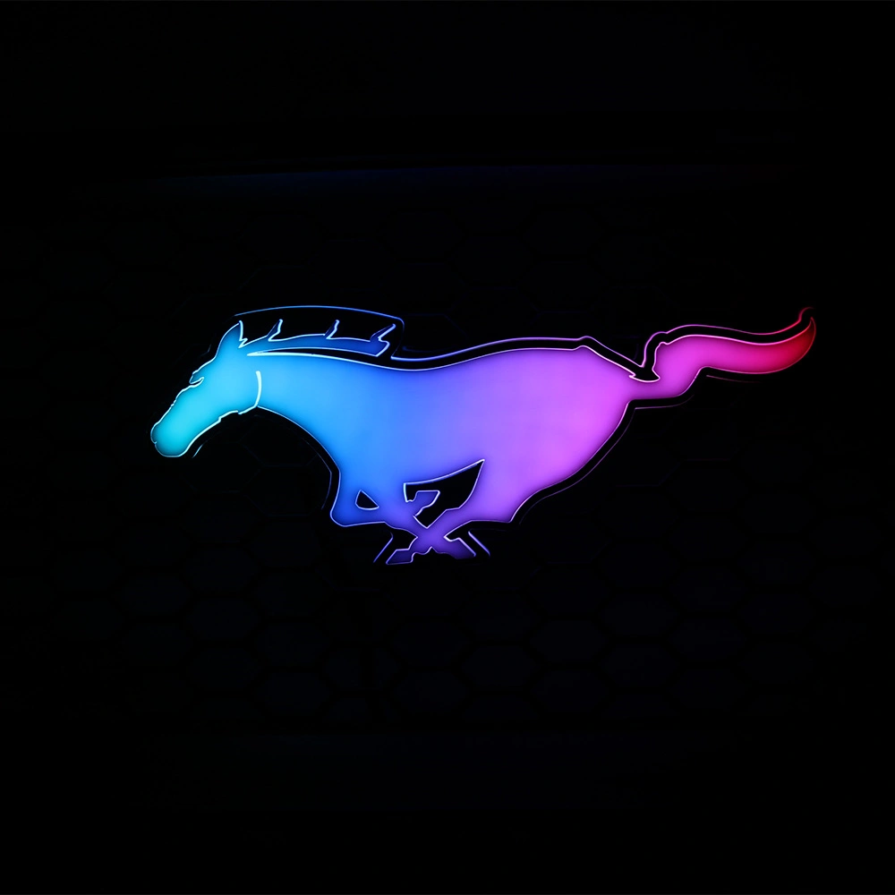 Premium RGB Flow Series Mustang Grill Emblem Pony Grill Badge with Dynamic RGB Lighting