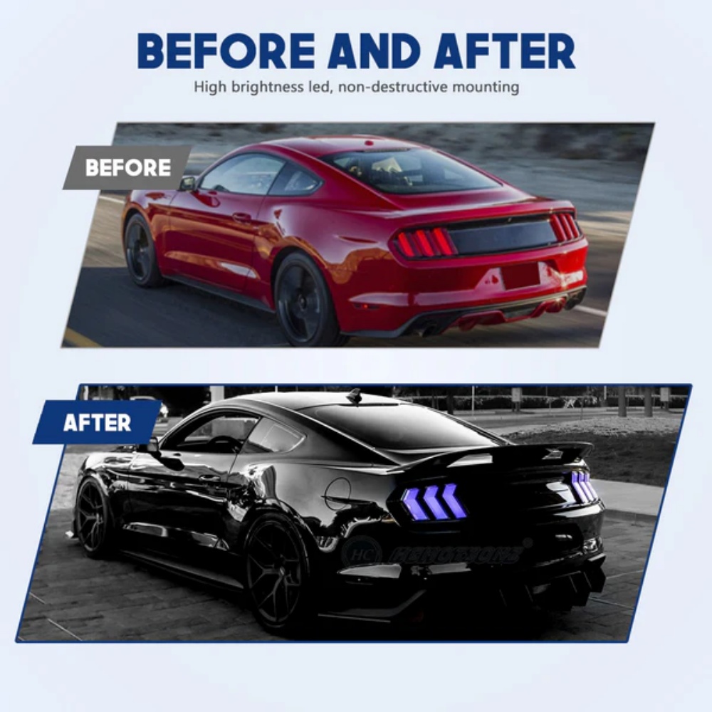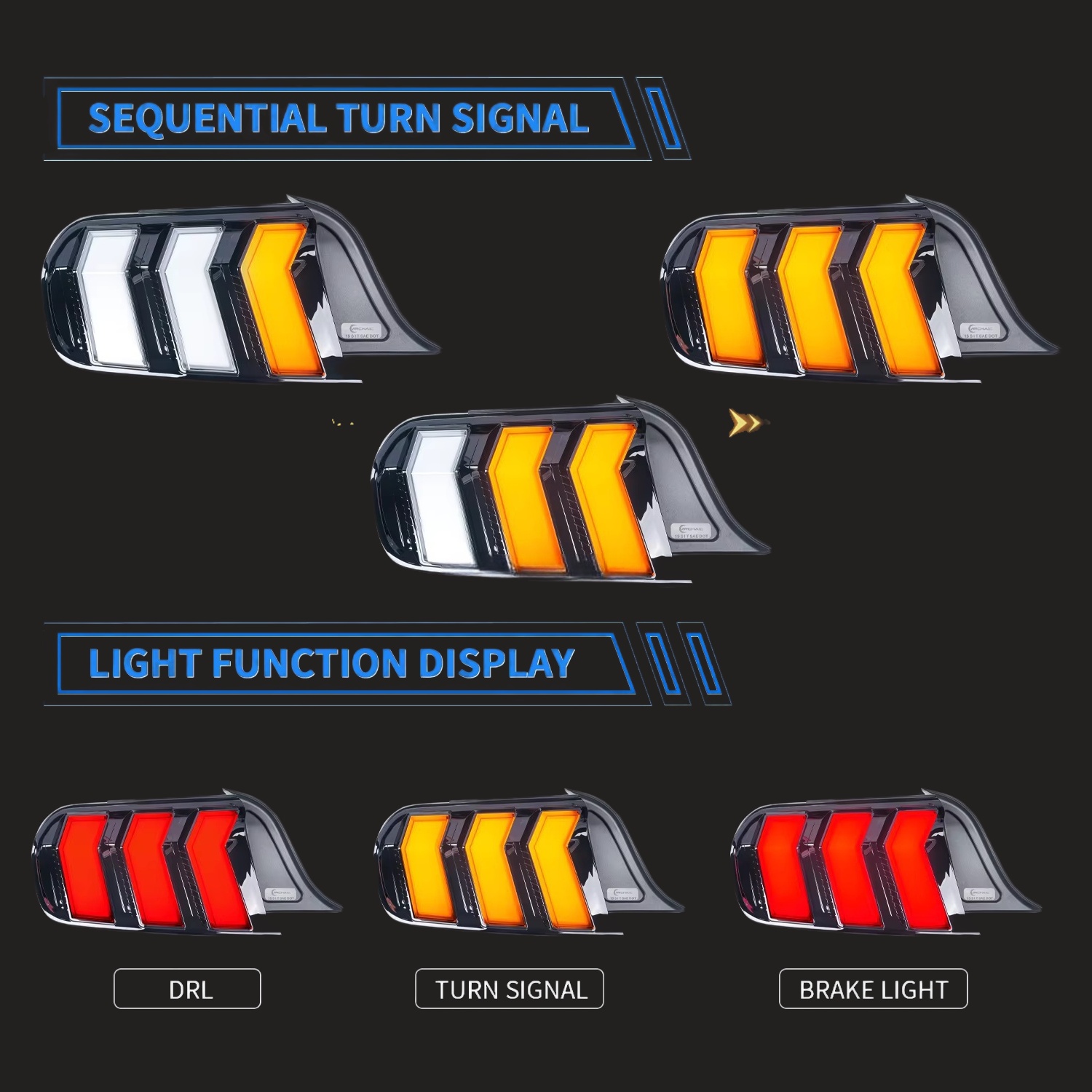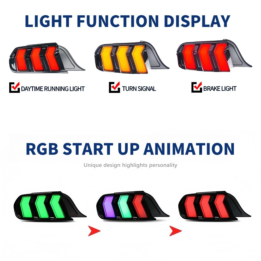 🔶Start animation: Start animation, flashing in sequence. Animated daytime running lights ensure that your Mustang is visible to other drivers in different directions on the road. It looks cooler and shinier, and is a great modification and upgrade replacement for the original taillights.