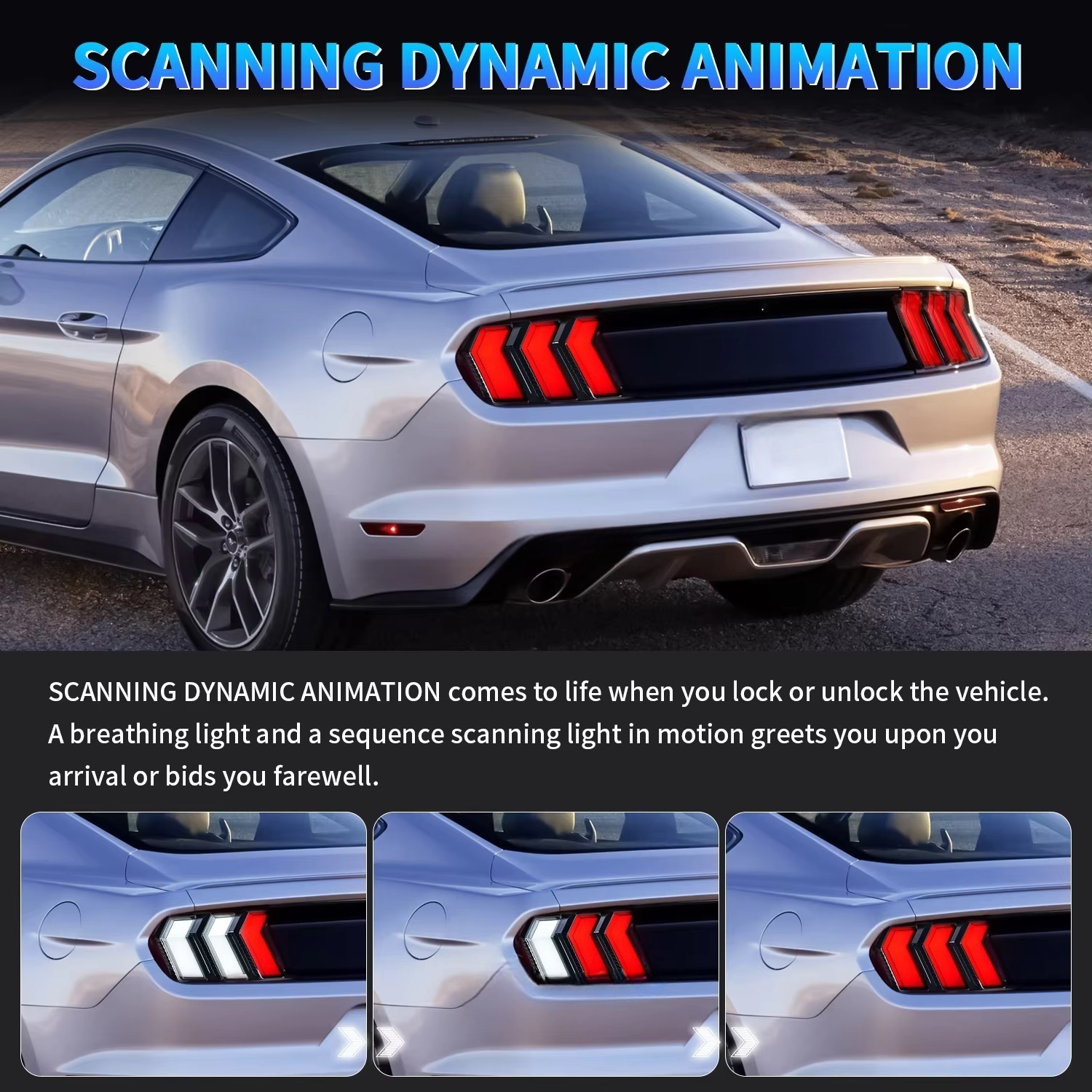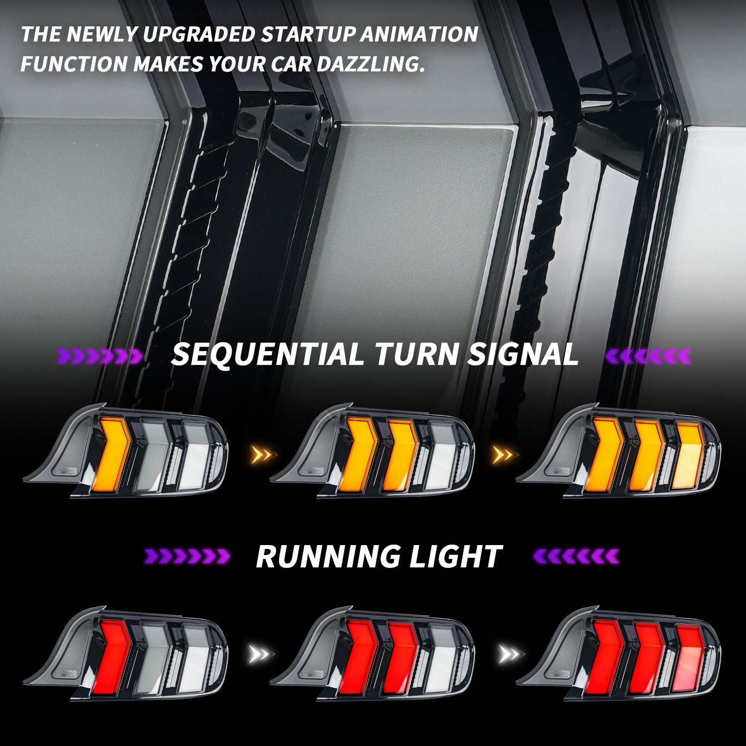 🔶Start animation: Start animation, flashing in sequence. Animated DRL ensures that your Mustang is visible to other drivers in different directions on the road. It looks cooler and shinier, and is a great modification and upgrade replacement for the original taillights.